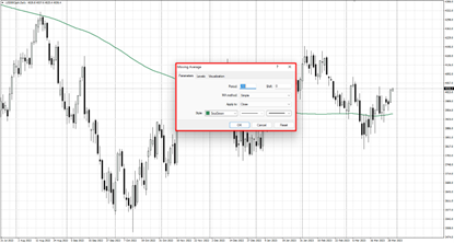 4、在出现的移动平均线设置窗口中,选择您想要的移动平均线周期,通常是200天。您还可以选择线的颜色、宽度以及其他参数。对于大多数趋势跟踪策略,推荐使用“Simple”移动平均线。