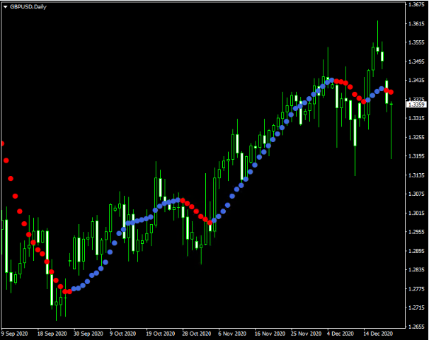 Dots指标通过显示蓝色和红色的圆点来指示上扬和下跌趋势。交易者可以根据圆点的颜色变化来判断市场的趋势方向,从而制定相应的交易策略。为了确保交易的准确性,建议交易者在等待两个相同颜色的圆点出现后再根据趋势进场交易。